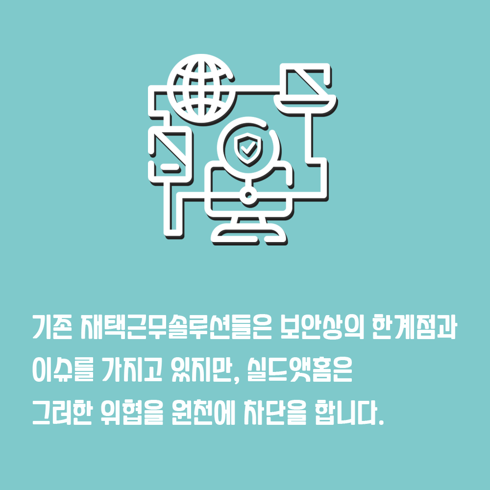 이러한 불편한 점들을 개선하기 위해서 소프트캠프에서는 실드앳홈이라는 재택근무시스템을 올해 새롭게 선보였습니다.